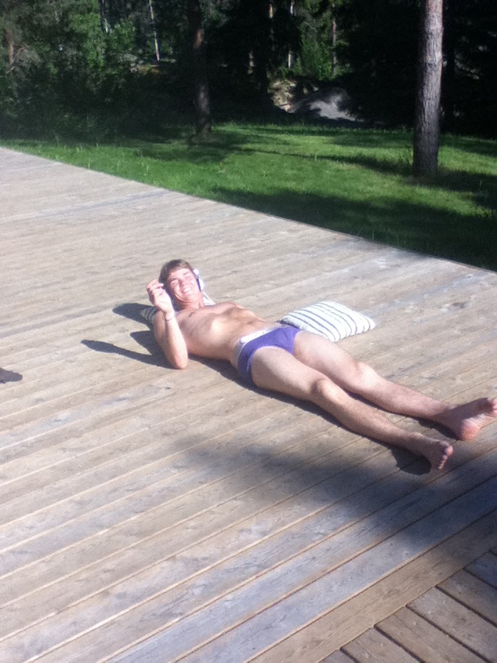 Last night, I slept so bad. I went to bed around 12 o'clock and fell asleep at 5 o'clock at morning, pretty miserable. I woke up at 9.15, so 4 hours of sleep, NOT enough! Then right 4hours later we went to physio swimming, which was a really good training... Then again, I had Anna today, so it really could not have been good :D Okay, it was ok. After swimming, we went for a dinner. Then back home and to lazyness! So here I am, in the yard and laying in the sun :)
